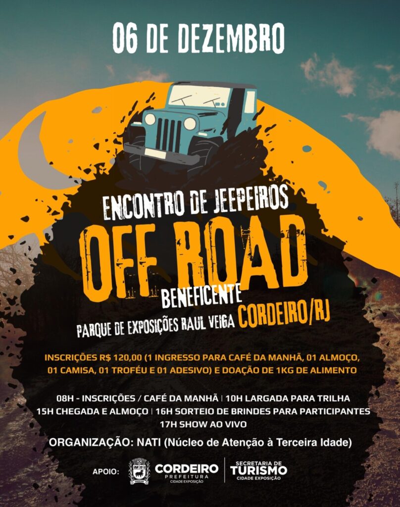 No dia 6 de dezembro, o Parque de Exposições Raul Veiga recebe o Encontro de Jeepeiros Off Road Beneficente, um evento que combina aventura, diversão e solidariedade. A programação inclui trilha, café da manhã, almoço, sorteios e show ao vivo, reunindo participantes de toda a região. A inscrição custa R$120 e inclui camisa, troféu, adesivo, […]