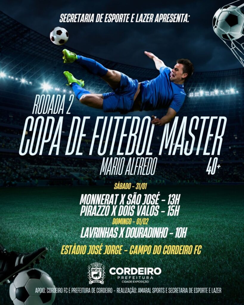 A Secretaria Municipal de Esporte e Lazer apresenta a 2ª rodada da Copa Mário Alfredo de Futebol Master 40+, que será realizada neste fim de semana no Estádio José Jorge, campo do Cordeiro Futebol Clube.