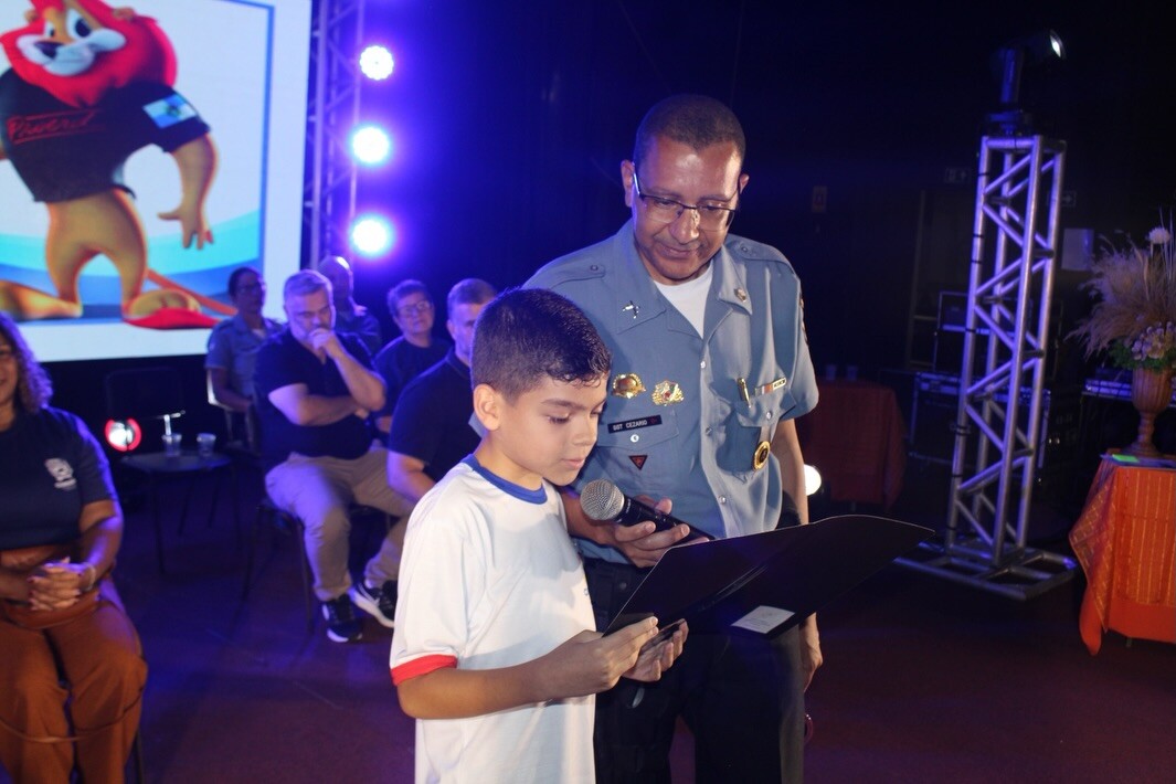 Os formandos fizeram o juramento, entoado pelo instrutor do programa, Cleber Cezário Pinheiro e, posteriormente, foi apresentada a redação de cada turma participante.