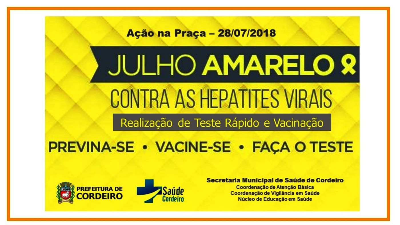 JULHO AMARELO Vem aí mais uma campanha importante da Secretaria de Saúde de Cordeiro. Fique ligado, dia 28 de julho, sábado, no Coreto da Praça Coronel Antônio Pinto, no centro da cidade. Sua participação é… JULHO AMARELO