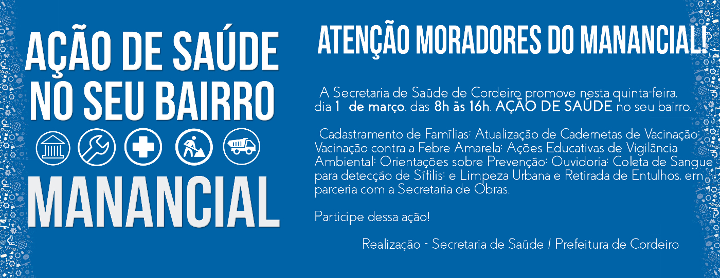 Cordeiro realiza ‘Dia D’ contra a febre amarela Vacinação será realizada no próximo sábado, dia 3 de março IMPRENSA CORDEIRO/CIDADE EXPOSIÇÃO É cada vez mais preocupante a situação da febre amarela em todo o território… Cordeiro realiza