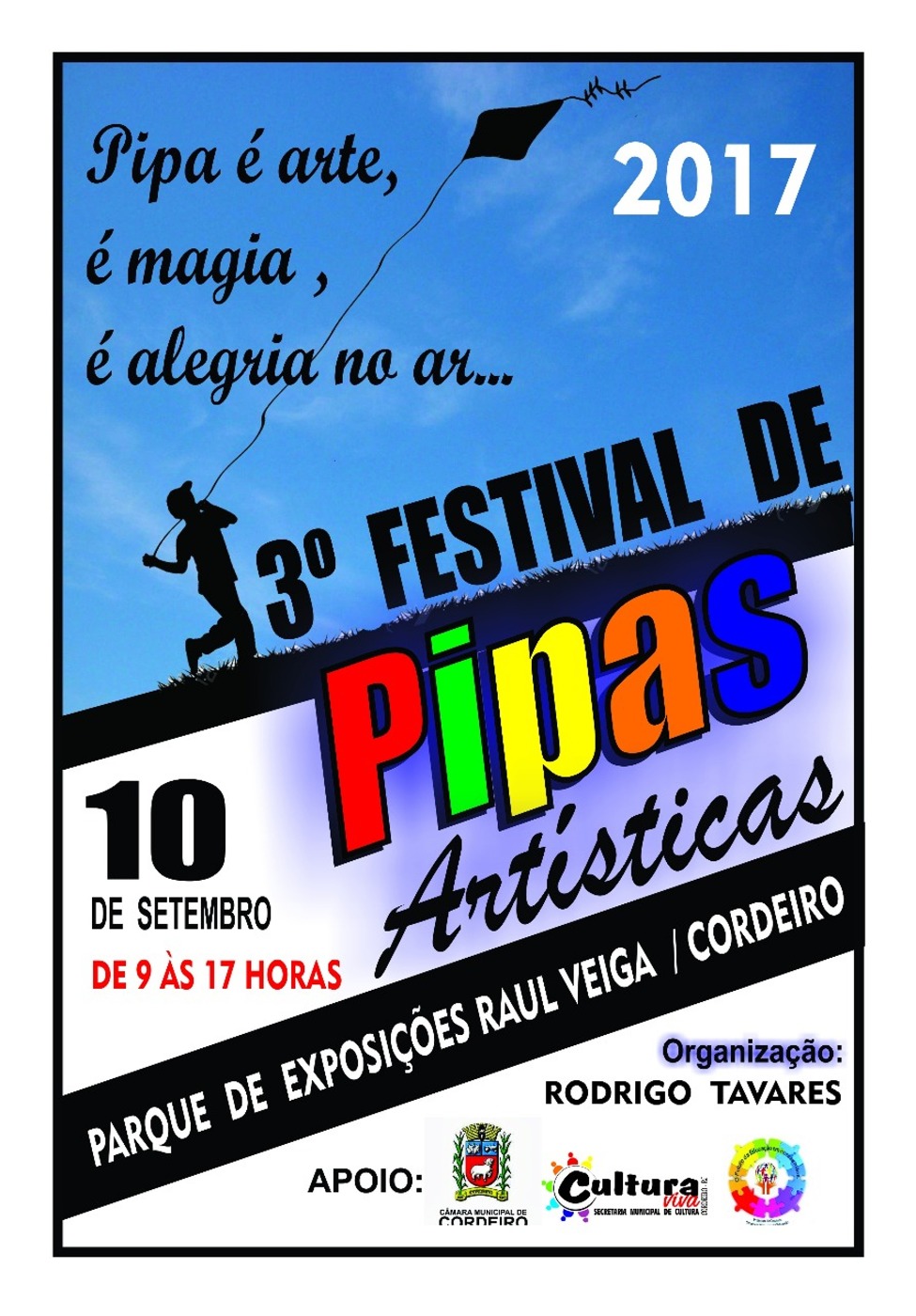 Vem aí o 3º Festival de Pipas de Cordeiro Com apoio da Secretaria de Cultura, evento ocorre em setembro ASSESSORIA DE IMPRENSA/PREFEITURA DE CORDEIRO Está chegando o momento tão aguardado pelos amantes das pipas, cafifas,… Vem aí o 3º Festival de Pipas de Cordeiro