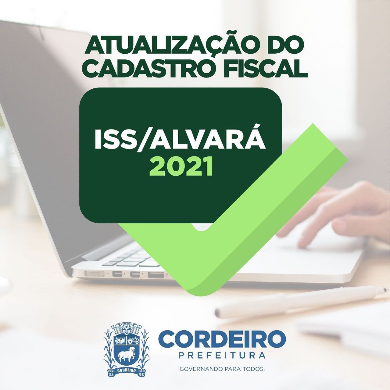 Atualização do Cadastro Fiscal (ISS/Alvará) A Secretaria de Fazenda de Cordeiro informa que a partir desta terça-feira, 18 de maio, irá realizar a atualização do ISS (Imposto Sobre Serviço de Qualquer Natureza) e do Alvará.… Atualização do cadastro fiscal