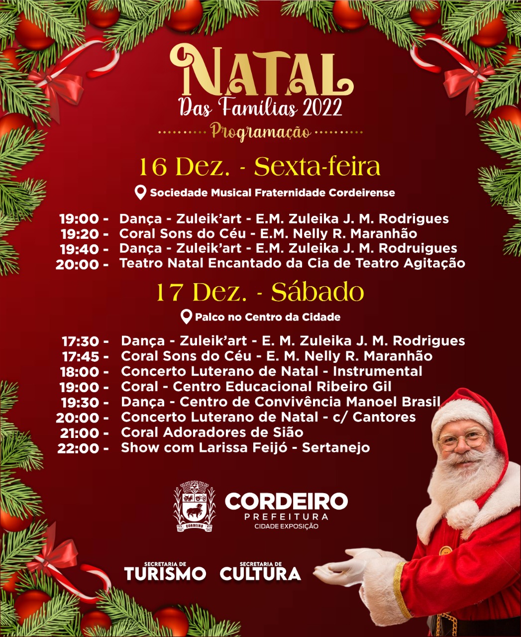 A Prefeitura de Cordeiro, através da Secretaria de Cultura irá realizar nos dias 21 e 22 de janeiro o tradicional evento Folia de Reis no Parque de Exposições Raul Veiga, contamos com a presença de… Festival de Folia de Reis