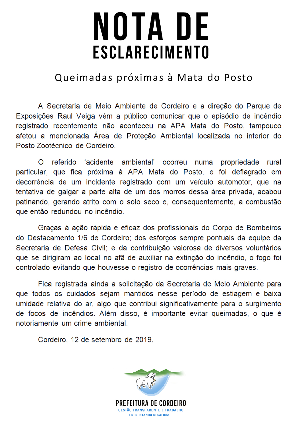 Cordeiro cria Cota Única para ISS e Alvará Datas limites serão 10 de outubro e 11 de novembro de 2019 IMPRENSA CORDEIRO/CIDADE EXPOSIÇÃO Através do Decreto Nº 081/2019, de 29 de Agosto de 2019, a… Cordeiro cria Cota
