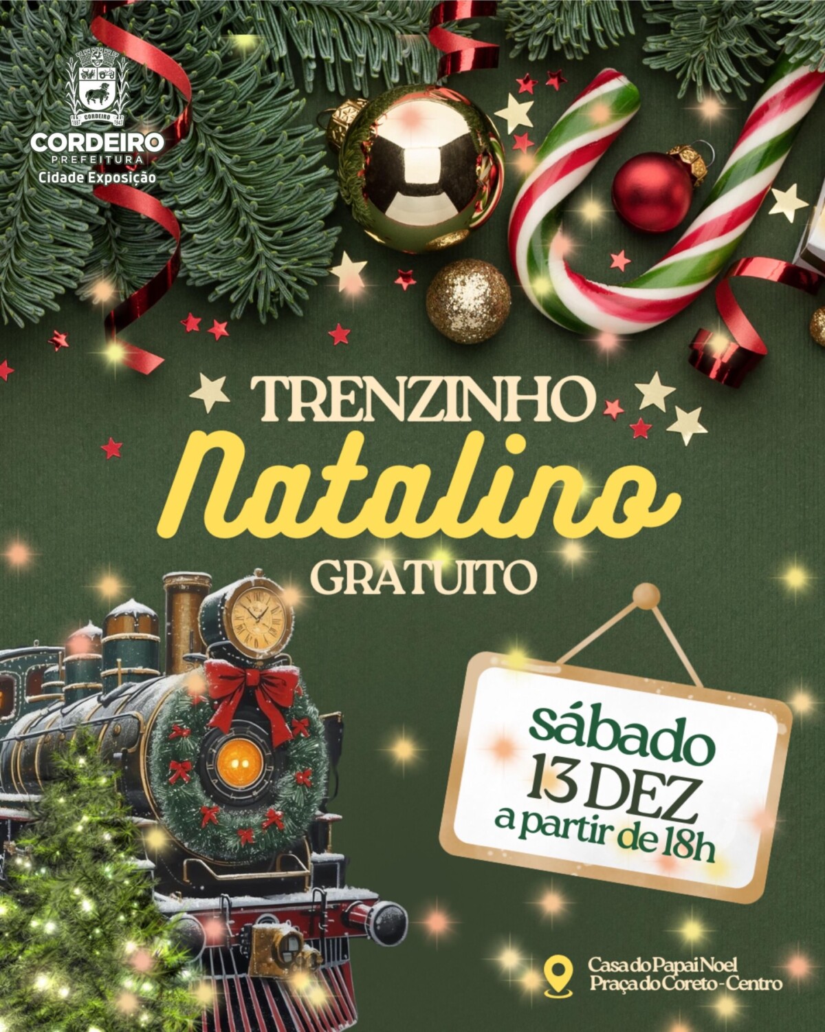 Cordeiro terá Trenzinho Natalino gratuito neste sábado, 13