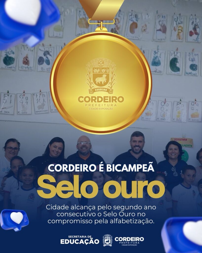 Pelo segundo ano consecutivo, o município de Cordeiro recebeu o Selo Ouro do Selo Nacional Compromisso com a Alfabetização, concedido pelo Ministério da Educação (MEC). A certificação destaca o desempenho do município na condução de políticas públicas voltadas à alfabetização das crianças.