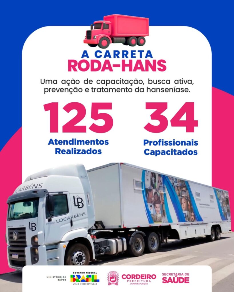 Cordeiro recebeu o Projeto Roda-Hans – Carreta da Saúde, uma iniciativa nacional dedicada ao diagnóstico e à prevenção da hanseníase.